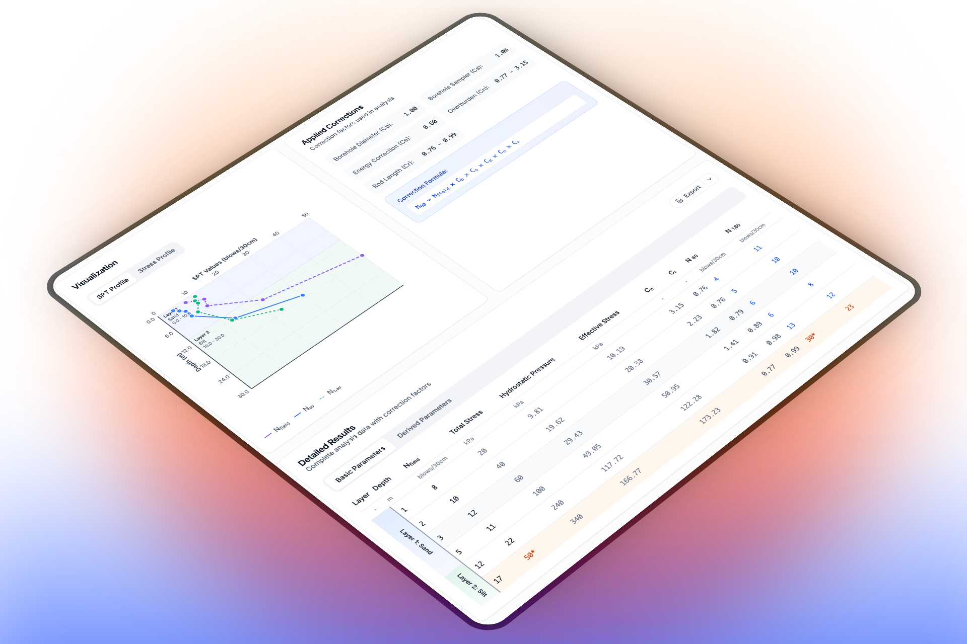 Transform raw SPT data into engineering insights. Automate corrections, generate reports, and assess soil properties with industry-standard methods.